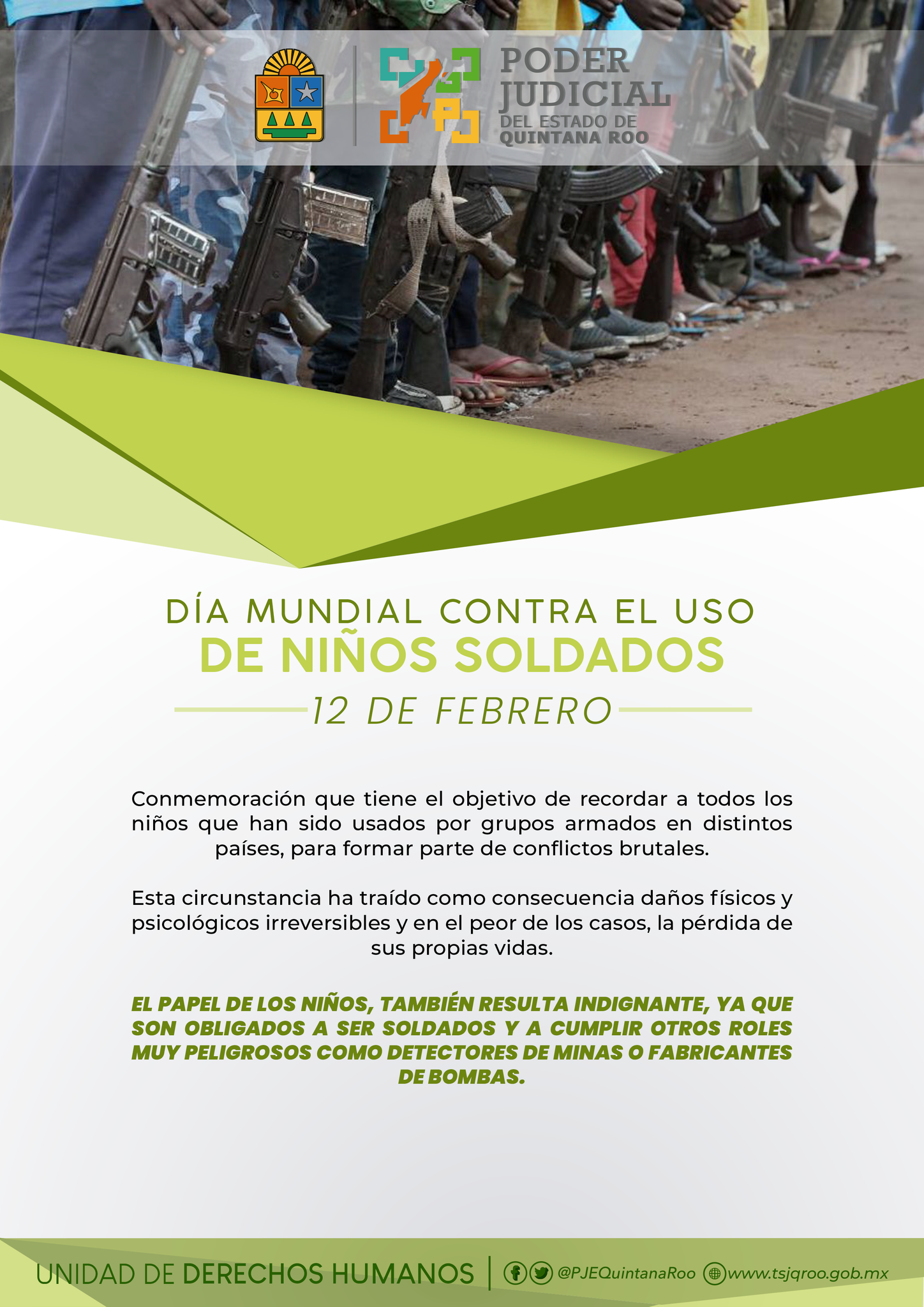 12 DE FEBRERO | DÍA MUNDIAL CONTRA EL USO DE NIÑOS SOLDADOS. #TSJQROO #PJEQROO #DerechosHumanos