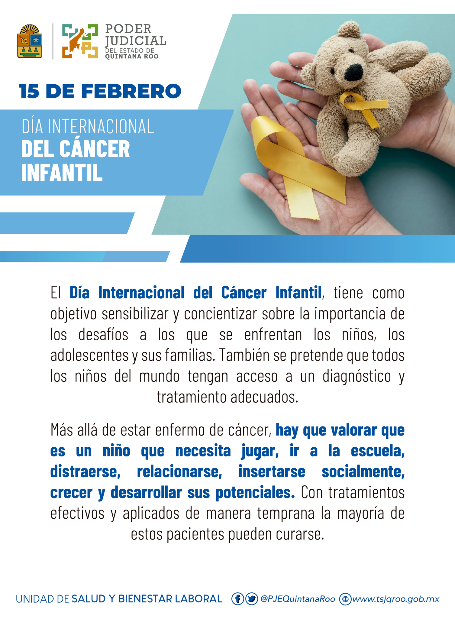 15 DE FEBRERO | DÍA INTERNACIONAL DEL CÁNCER INFANTIL. #PoderJudicialdelEstado #CáncerInfantil