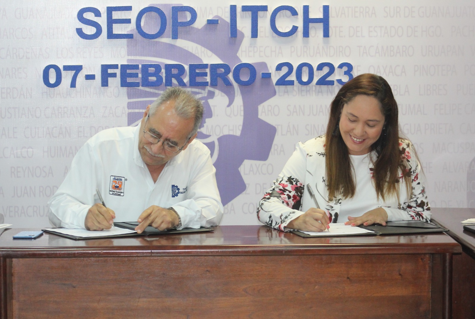 La firma del acuerdo estuvo encabezada por el director del ITCH, Mario Vicente González Robles y la titular de la SEOP, Irazú Sarabia, quienes dieron certeza a las acciones de colaboración que se realicen en beneficio de las y los jóvenes estudiantes de las diversas carreras profesionales que se imparten en dicha casa de estudios sobre todo de arquitectura e ingeniería civil.