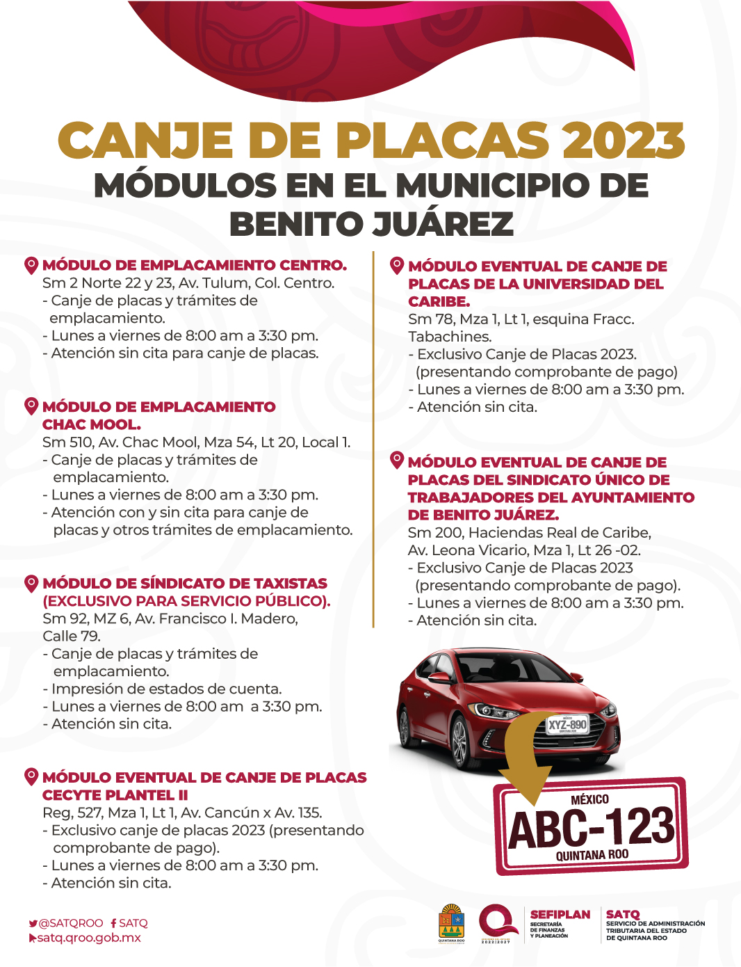 Si tu vehículo está registrado en el municipio de Benito Juárez, conoce los módulos a los que puedes acudir a realizar tu canje de placas 2023.