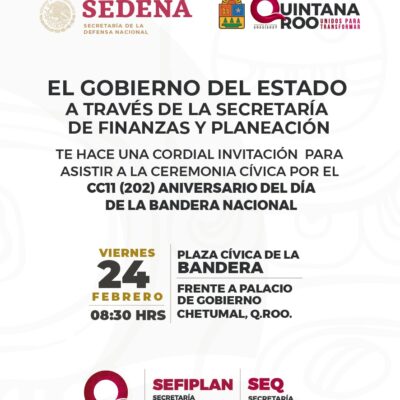 📅 Viernes 24 de febrero ⏰ 8:30 hrs 📍Plaza cívica de la Explanada de la Bandera; frente a Palacio de