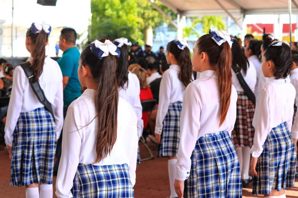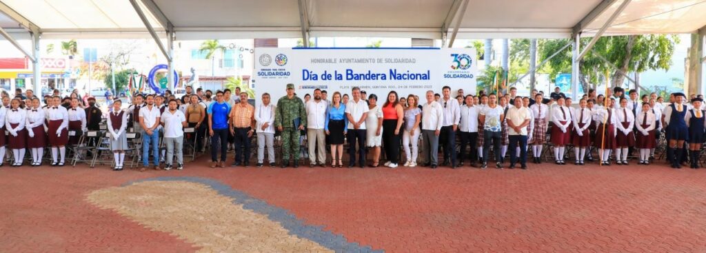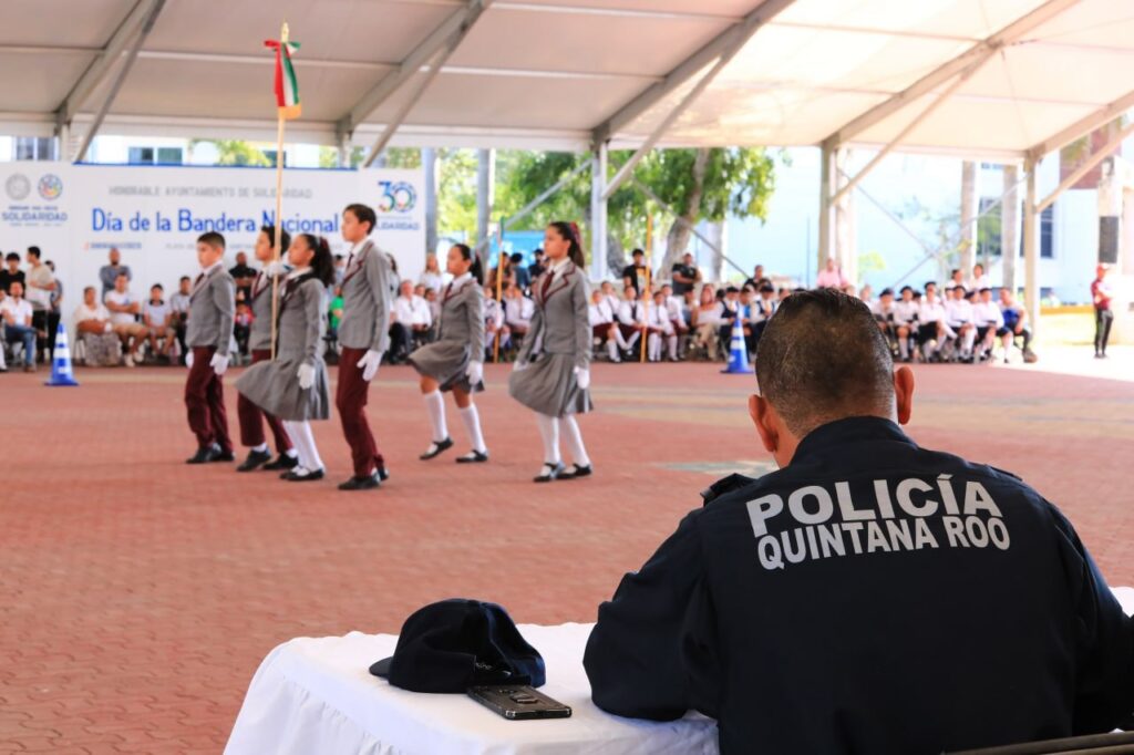 Playa del Carmen, Solidaridad, 24 de febrero del 2023.- Para fomentar los valores cívicos en la niñez y juventud, la presidenta municipal Lili Campos reactivó, después de siete años, el concurso municipal de escoltas escolares, con la participación de 18 agrupamientos de nivel primaria, secundaria y preparatoria.