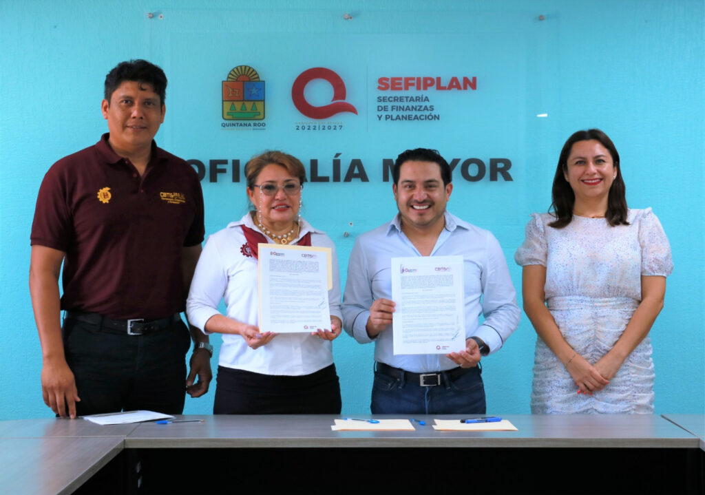 Chetumal. – En el marco de la campaña de profesionalización que lleva a cabo la Secretaría de Finanzas y Planeación (SEFIPLAN) a través de la Oficialía Mayor para las personas servidoras públicas del Gobierno de Quintana Roo, se firmaron convenios de colaboración con representantes de la Universidad del Sur y del Centro de Bachillerato Tecnológico, Industrial y de Servicios 253.