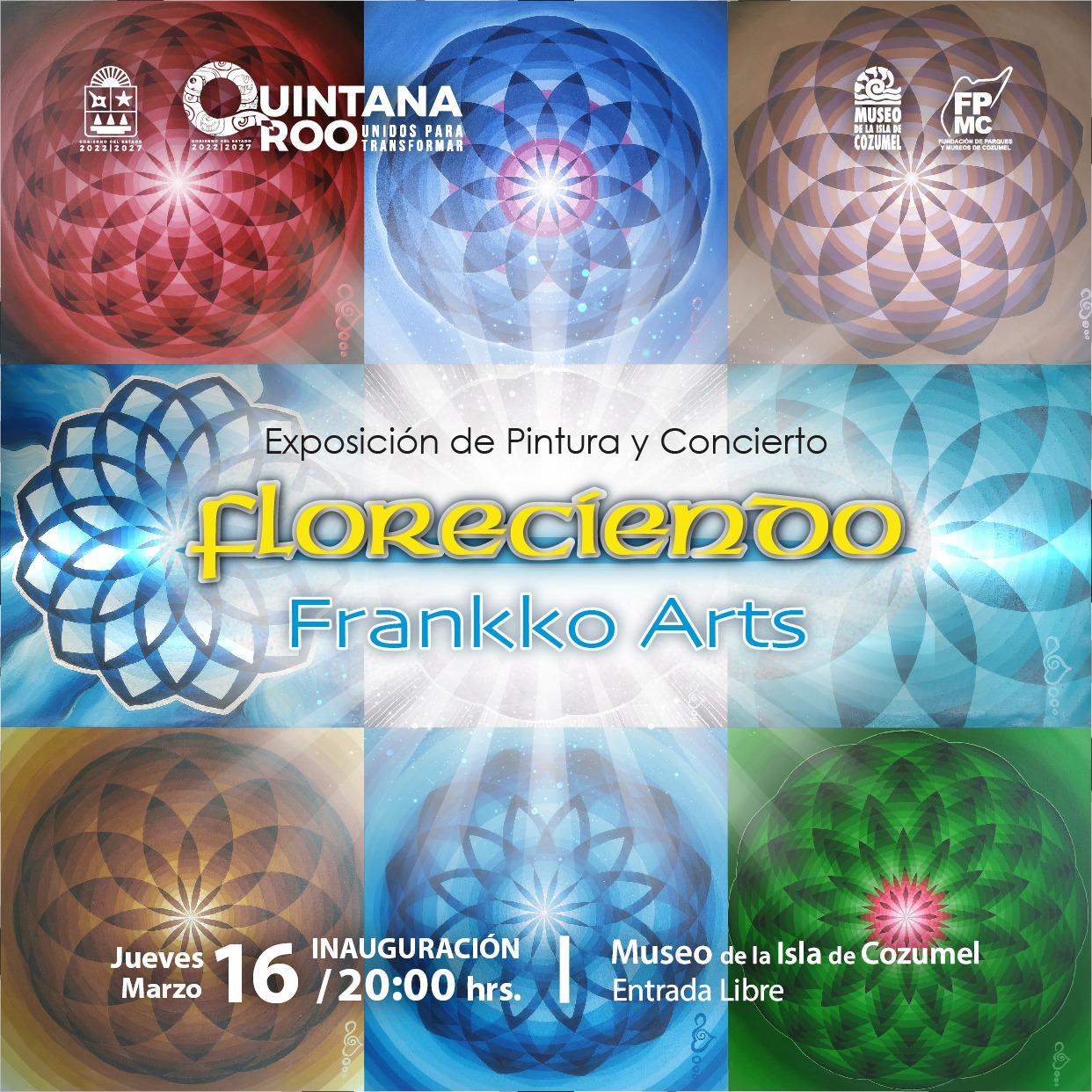 “Floreciendo” está integrada por 12 obras elaborados con la técnica de óleo sobre tela, será la primera exposición individual en México de “Frankko Arts”, colección que es resultado de un trabajo de introspección que ha realizado en los últimos años, que quiere compartir con el público cozumeleño, dijo la directora del Museo.