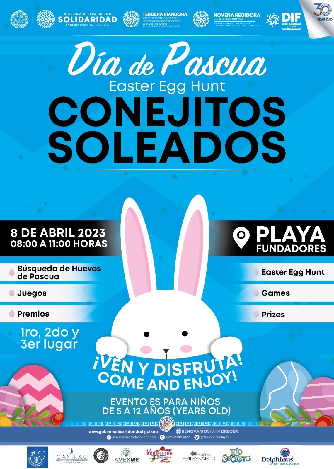 El primer evento, a través de las secretarías de Turismo y de Desarrollo Económico y Atracción de Inversiones, denominado “Conejitos Soleados” se llevará a cabo, en su segunda edición, este 8 de abril en Playa Fundadores de 8 a 11 de la mañana.