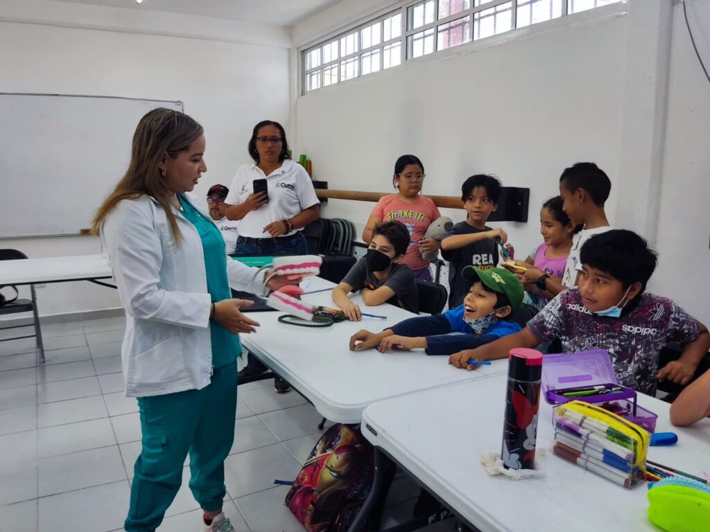 La salud de la niñez de Quintana Roo es una de las prioridades establecidas en el Nuevo Acuerdo por el Bienestar y Desarrollo que impulsa la gobernadora Mara Lezama, destacó Dianela Cervantes Chi, directora de Pedagogía y Asistencia Social, quien explicó que este taller se impartió gratuitamente a la infancia cozumeleña de 7 a 11 años de edad, con el apoyo de cirujana dental Sandy Osorio, de la clínica Cuauhtli.