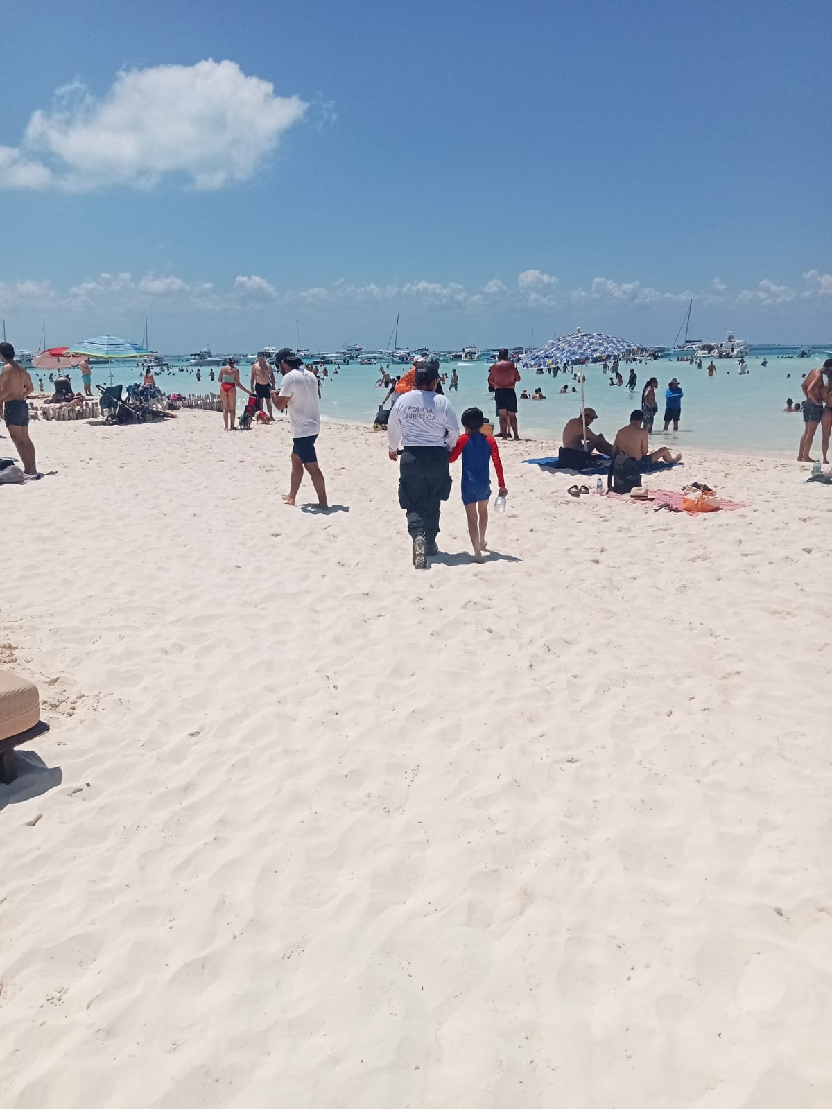 ISLA MUJERES, 8 DE ABRIL DE 2023.- Elementos de Seguridad Pública del municipio de Isla Mujeres cuando se encontraban de recorrido en el área de playa Mia, se aproximaron a un restaurante donde reportaron que un menor de 6 años se acercó a la empleada del lugar, mencionando que estaba perdido, por lo que realizaron los protocolos pertinentes para brindarles seguridad y localizar a su padres, entregándolo sano y salvo.