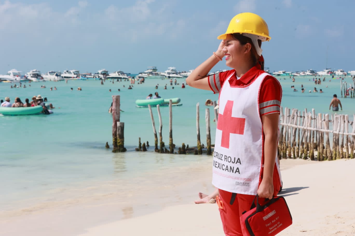 ISLA MUJERES, 8 DE ABRIL DE 2023.- Gracias al esfuerzo conjunto del gobierno municipal, estatal y federal, los miles de turistas que han elegido a Isla Mujeres como su destino para vacacionar esta Semana Santa, encuentran playas seguras y limpias de sargazo.