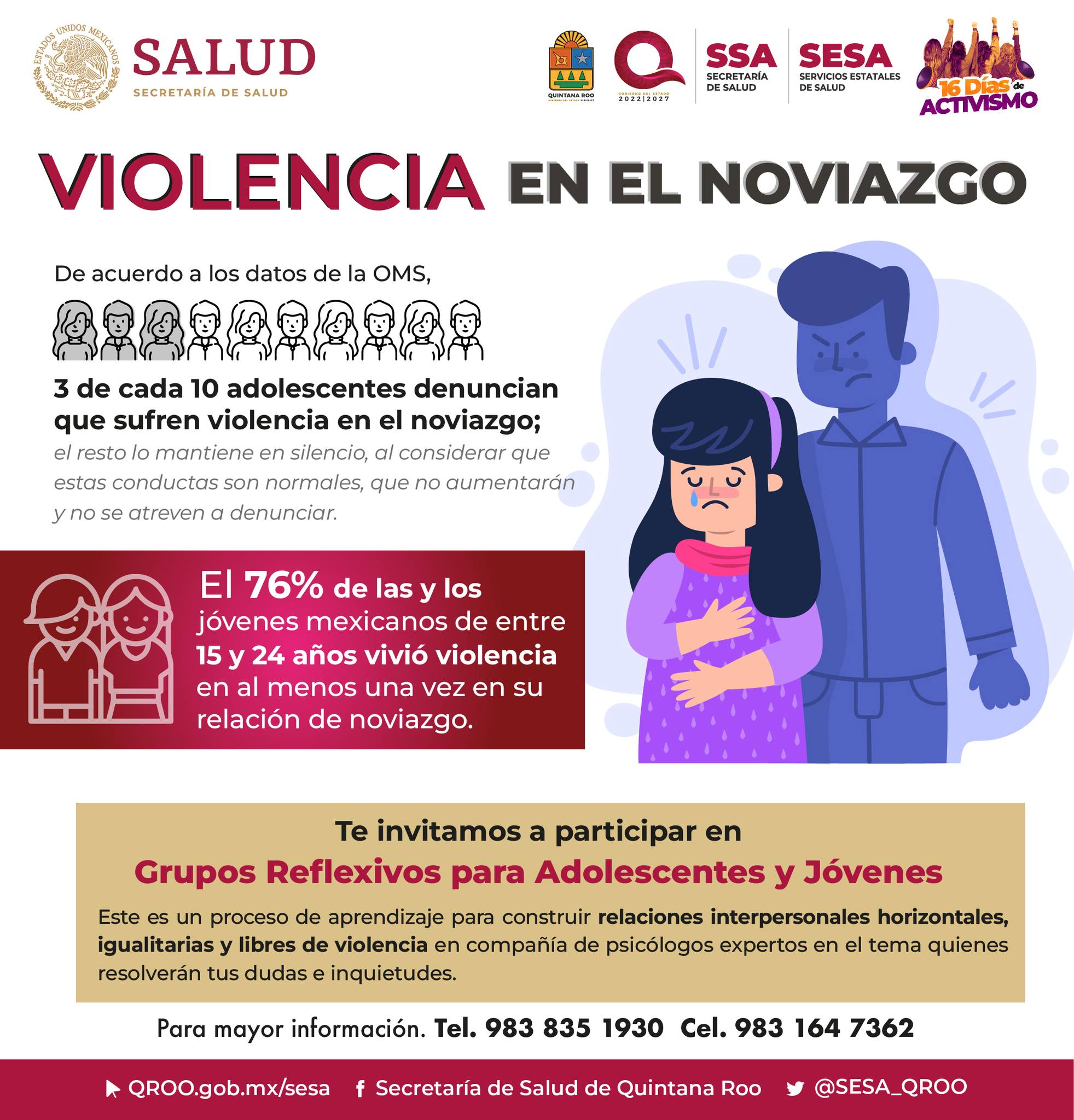 El 76% de las y los jóvenes mexicanos de entre 15 y 24 años vivió violencia en al menos una vez en una relación de noviazgo.