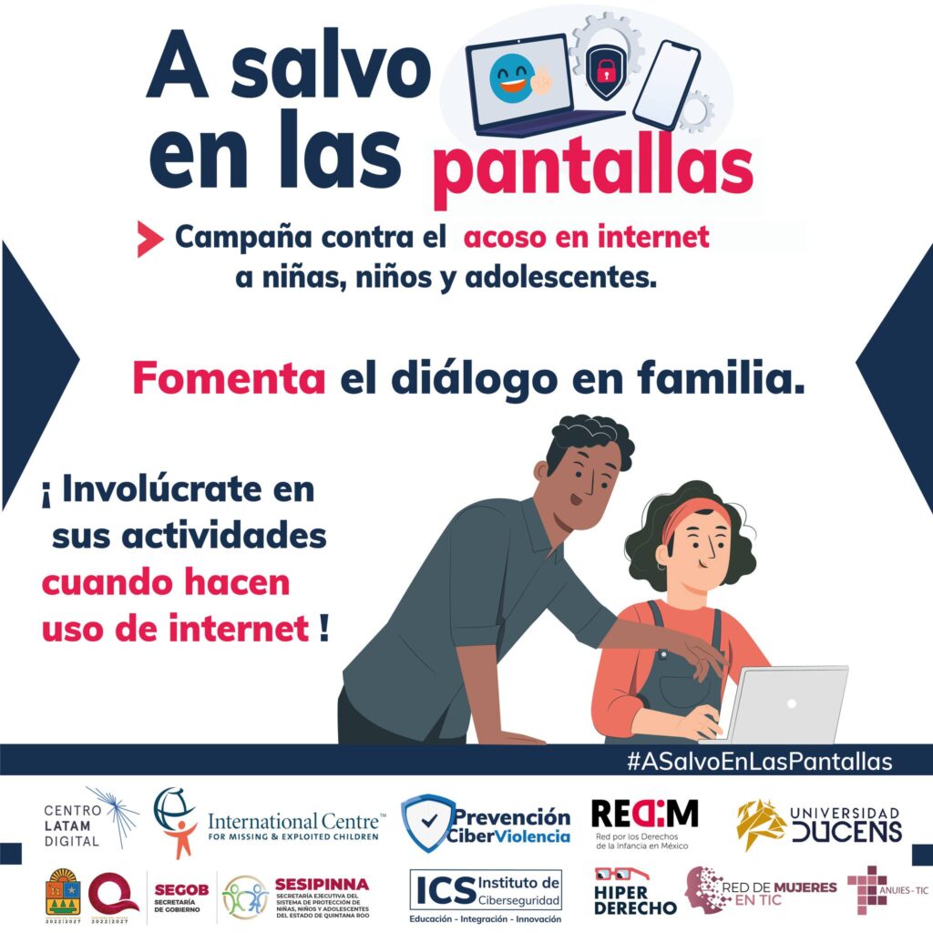 El diálogo entre los miembros de la familia es muy importante, hablen y aprendan juntos sobre los riesgos y oportunidades que existen en internet Tú, yo y todas las personas merecemos estar #ASalvoEnLasPantallas