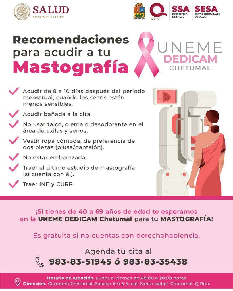 En la UNEME DEDICAM CHETUMAL puedes agenda tu cita con los números 9838351945 ó 9838335438