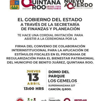 Acompáñanos a la firma del Convenio para la aplicación de #EstímulosFiscales en el programa de Regularización para el bienestar patrimonial