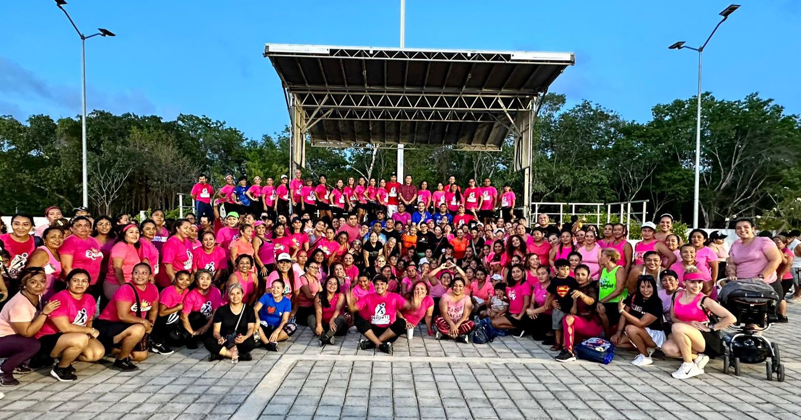 En esta ocasión se combinó el baile fitness con el ejercicio funcional, donde los asistentes y maestros recibieron sus playeras rosas alusivas al evento con una asistencia de alrededor de 400 personas que se dieron cita.