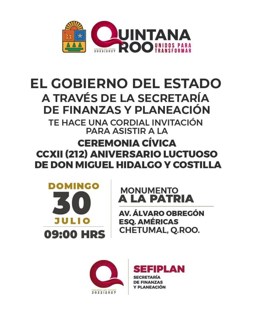 ✅Acompáñanos a la Ceremonia Cívica por el 212 aniversario luctuoso de Don Miguel Hidalgo y Costilla. ¡Te esperamos!. 👇