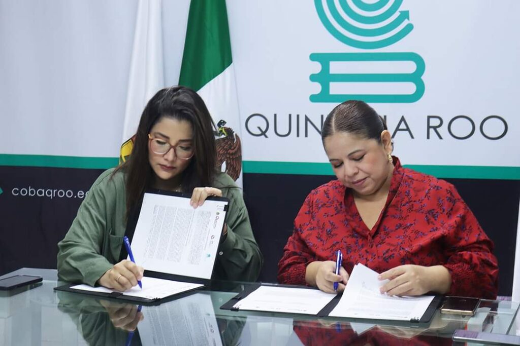 Chetumal.- El Instituto Quintanarroense de la Mujer (IQM), y el Colegio de Bachilleres de Quintana Roo (COBAQROO), signaron un convenio de colaboración con la finalidad de trabajar en proyectos y acciones conjuntas para la formación de redes de mujeres jóvenes “Faros de Luz”, talleres de robótica, escuela de liderazgo, pláticas y talleres para la prevención de la violencia en el noviazgo y el embarazo adolescente.