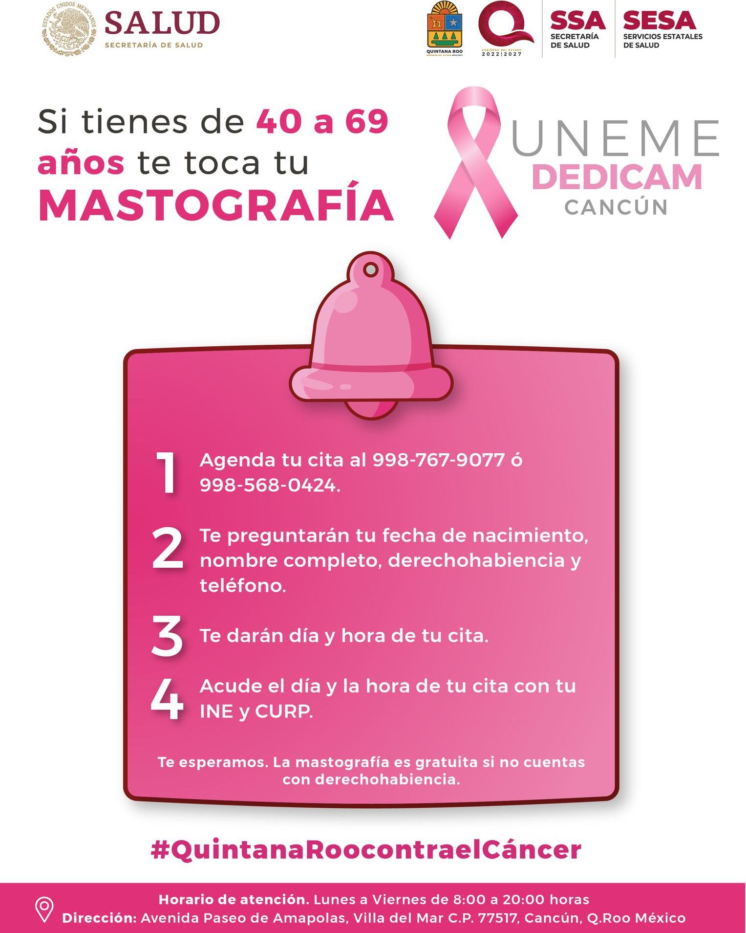 Si tienes de 40 a 69 de años de edad agenda tu cita en UNEME DEDICAM CANCUN. Es gratuita si no cuentas con derechohabiencia