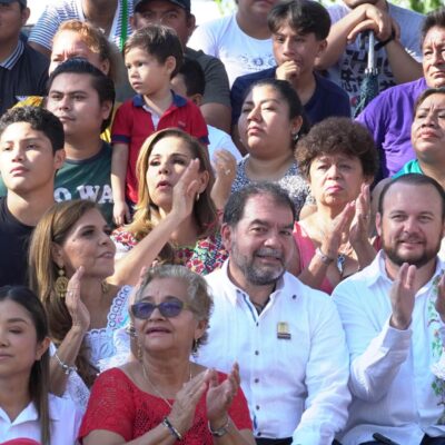 -La gobernadora de Quintana Roo observó desde las gradas, rodeada de las familias, el paso del contingente en conmemoración del