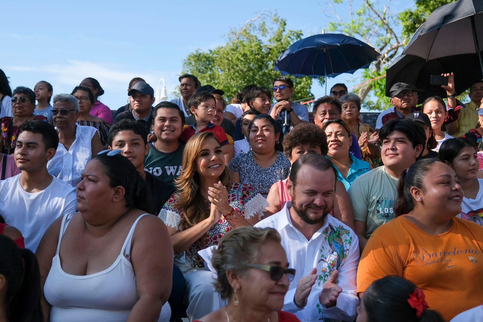La gobernadora Mara Lezama autorizó el inicio del desfile desde el balcón principal de Palacio de Gobierno, luego bajó a presenciar el paso de los estudiantes sentada en las gradas, rodeada del pueblo, para después subir de nuevo y presenciar el paso del contingente militar, acompañada de la presidenta municipal Yensunni Martínez Hernández, y la presidenta honoraria del DIF Quintana Roo, Verónica Lezama así como diversas familias, entre ellas la familia Bot Mota, integrada por Baltazar Bot, su esposa Iris Mota y el niño Samuel Bot Mota.