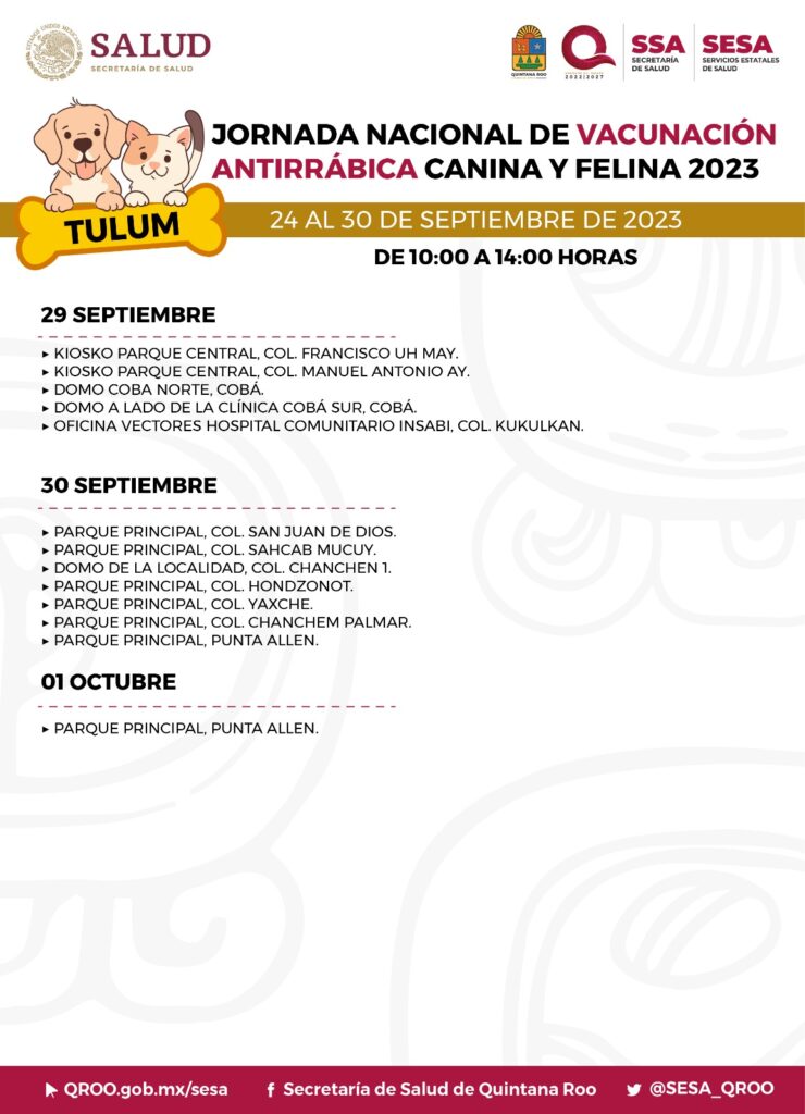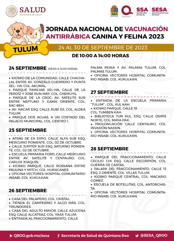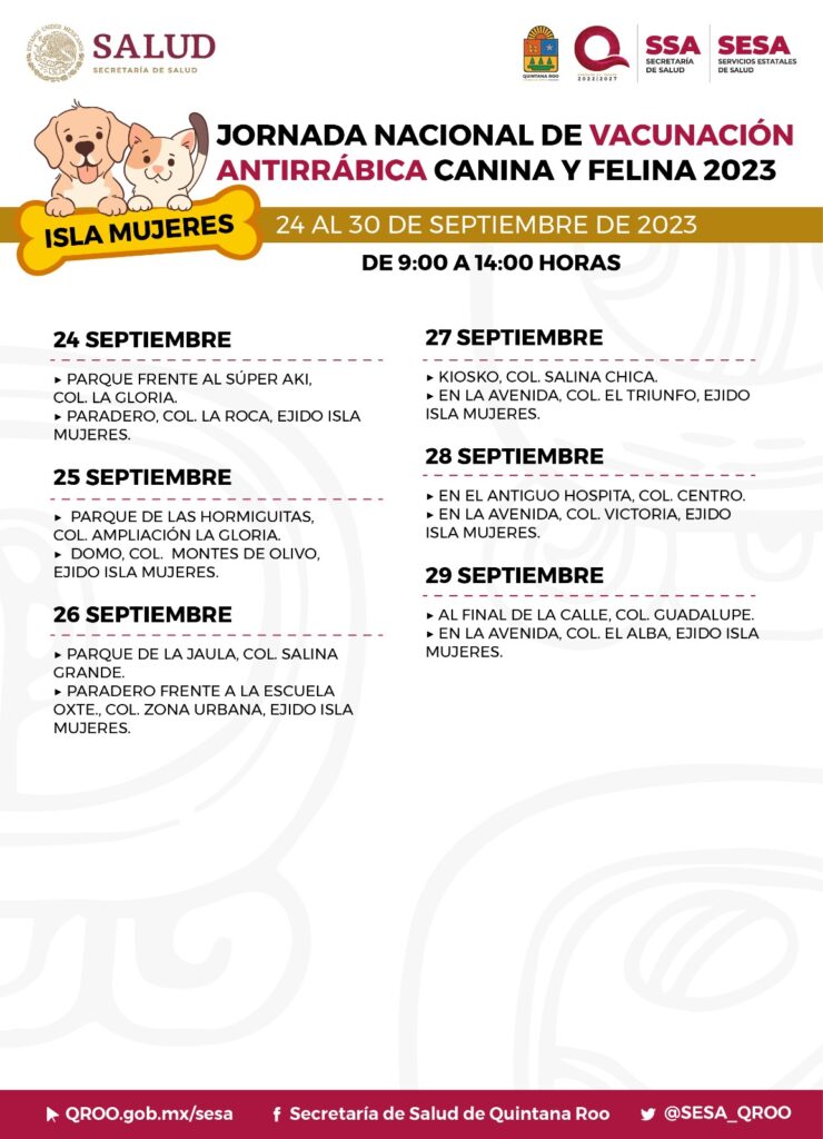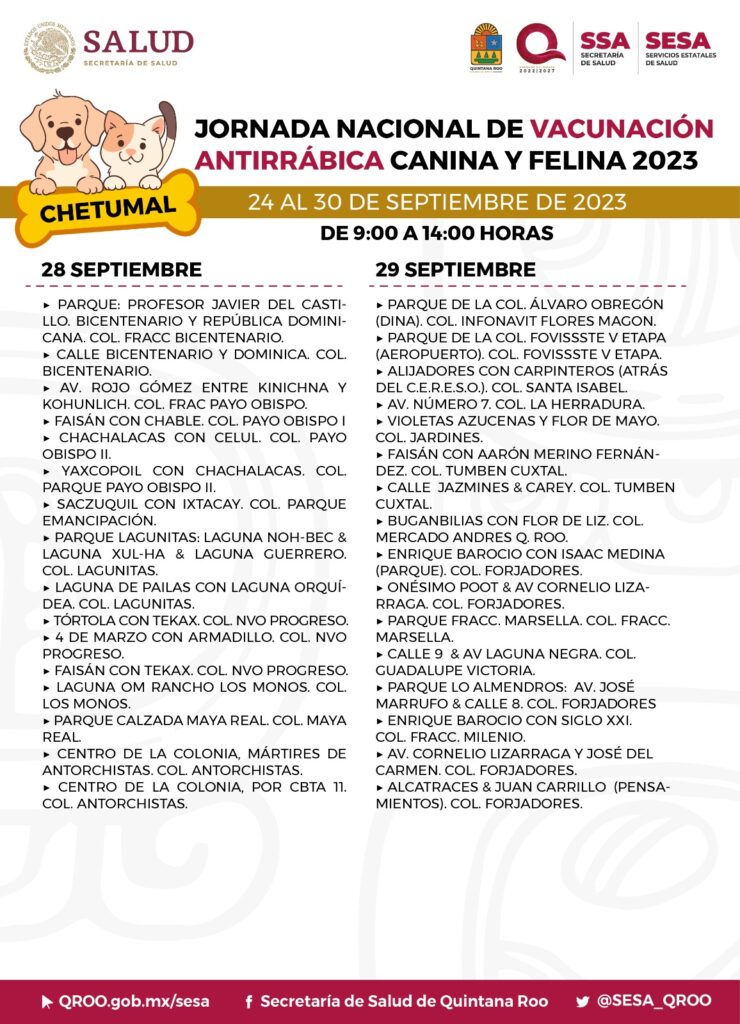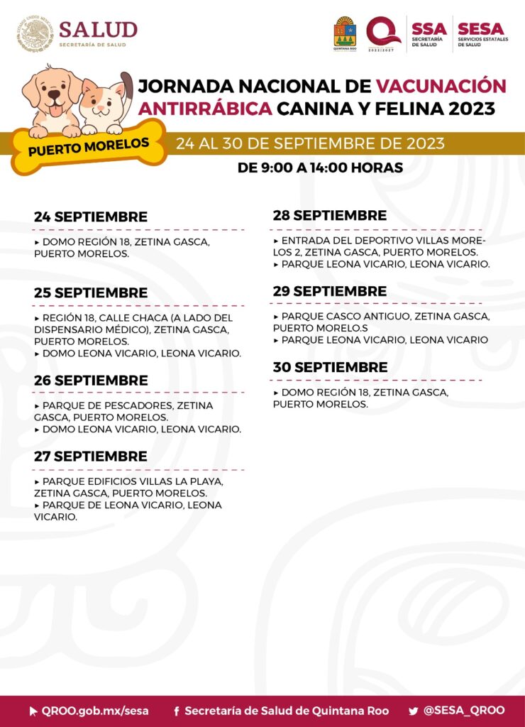 Al respecto, recomendó a la población consultar la siguiente página https://qroo.gob.mx/sesa/jornada-vacunacion-antirrabica para verificar la calendarización de los puestos de vacunación.