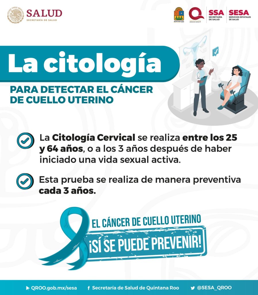 El cáncer de cuello uterino se puede prevenir y detectar a través de la citología, esta prueba se debe realizar de manera preventiva cada 3 años