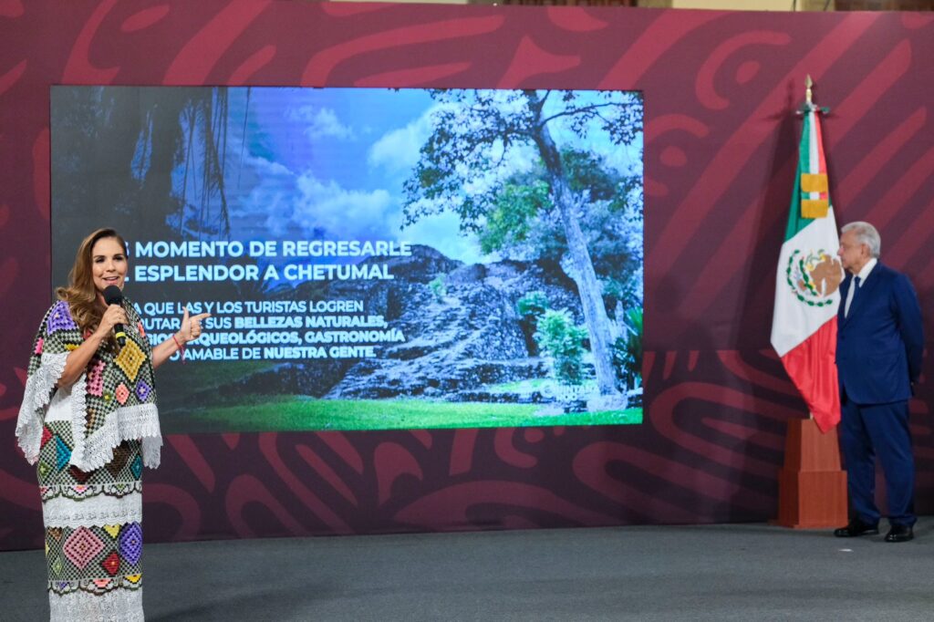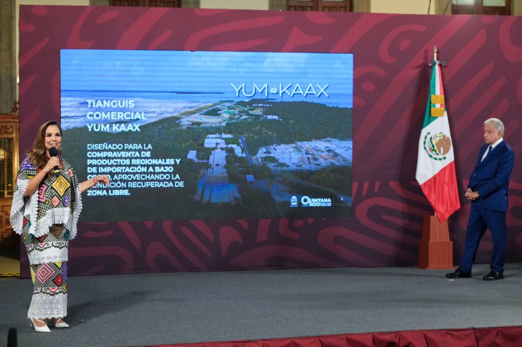 Ciudad de México a 18 de septiembre del 2023.- Durante la presentación de los avances de la construcción del Tren Maya en la conferencia matutina del presidente Andrés Manuel López Obrador, la gobernadora Mara Lezama anunció la creación del *Tianguis Comercial Yum Kaax, un proyecto diseñado para la compra venta de productos regionales y de importación a bajo costo, con lo que se aprovechará la condición de zona libre de Chetumal, pero además le regresará el protagonismo a esta zona del caribe mexicano.