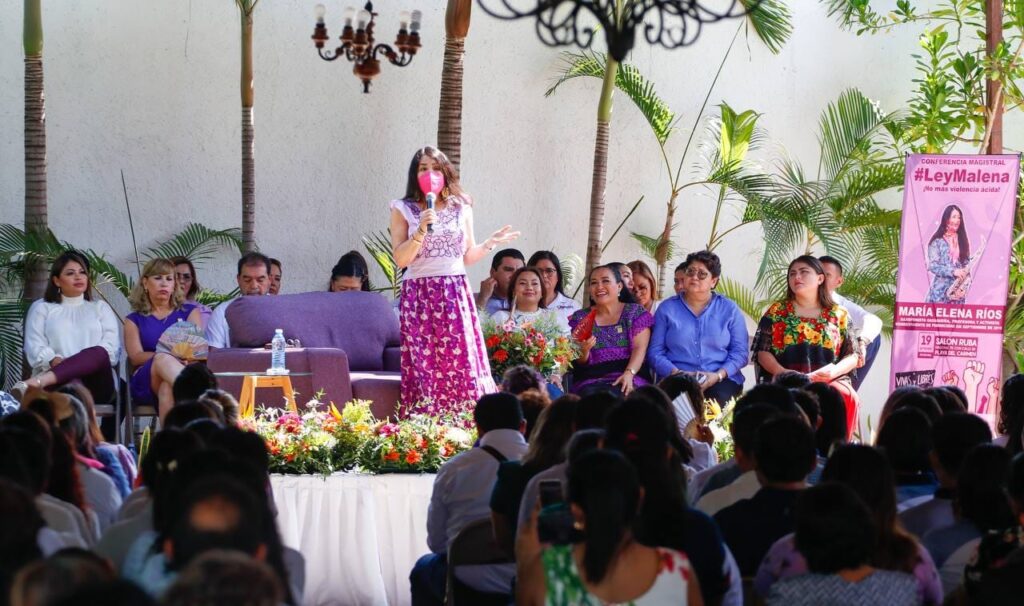 La saxofonista María Elena Ríos, víctima de un ataque con ácido en 2019, expuso la necesidad de esta Ley para visibilizar la violencia ácida como una forma de tentativa de feminicidio.