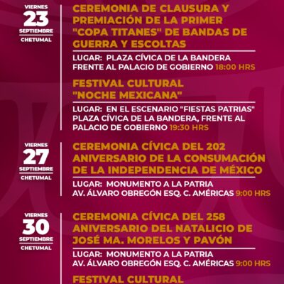 Te invitamos a continuar participando en las diferentes celebraciones que el Gobierno de Quintana Roo tiene para ti durante las