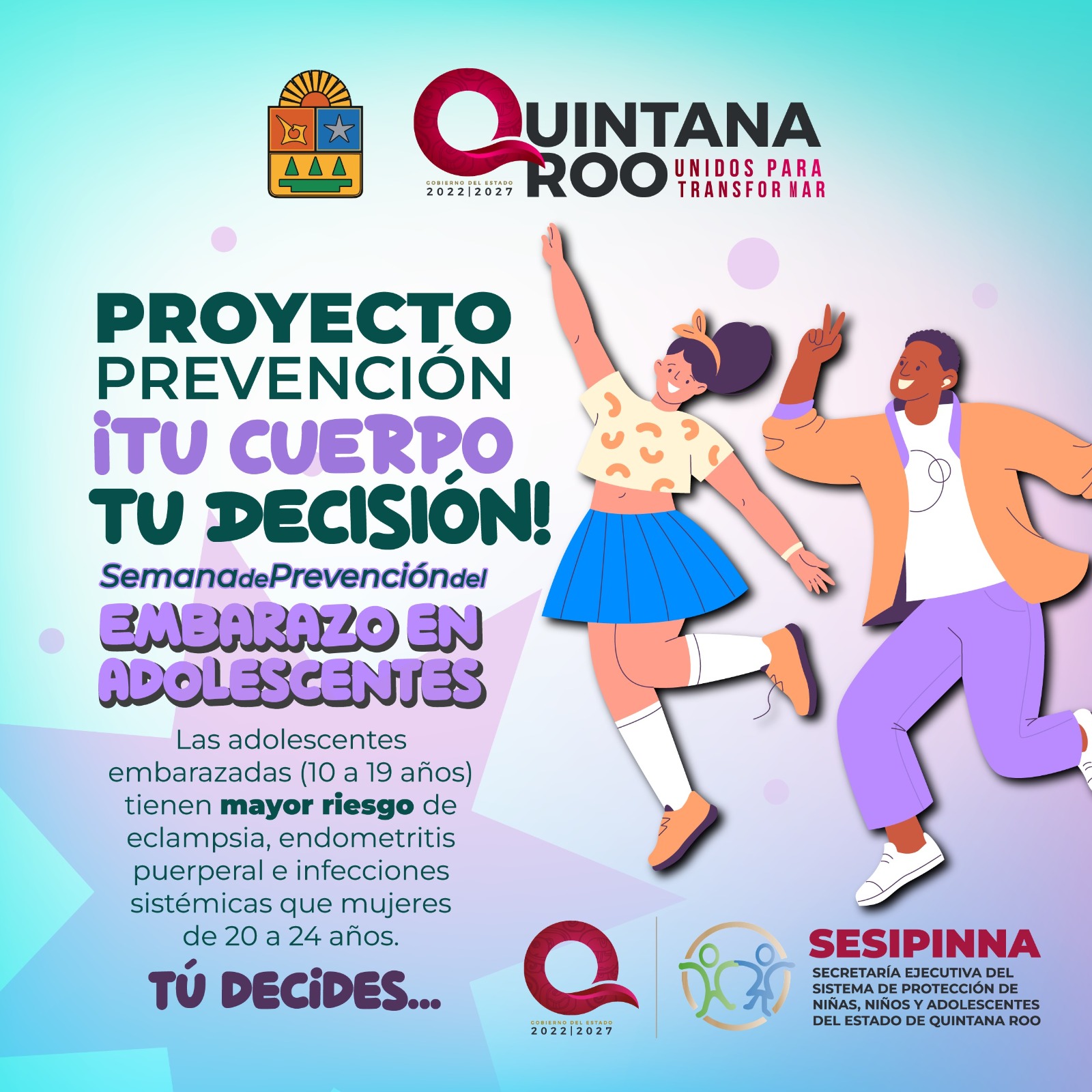 Chetumal.- La Secretaría Ejecutiva del Sistema de Protección de Niñas, Niños y Adolescentes (SIPINNA) del Estado de Quintana Roo lanza un llamado a dependencias, gobiernos municipales, asociaciones civiles, docentes y madres y padres de familia para sumarse a la campaña #ProyectoPrevención #TuCuerpoTuDecisión, con el fin de concientizar a las y los adolescentes acerca de la importancia de la planificación familiar.