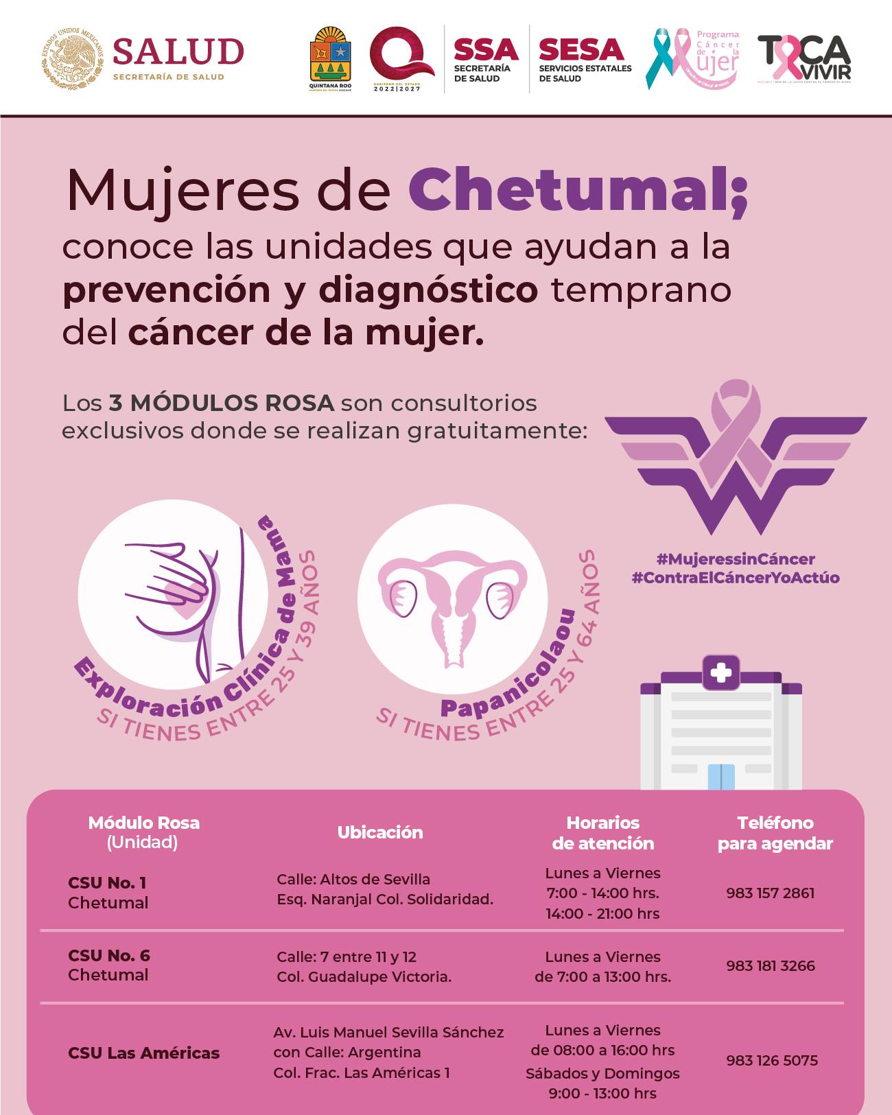 En Quintana Roo contamos con módulos de atención exclusiva del programa Cáncer de la Mujer