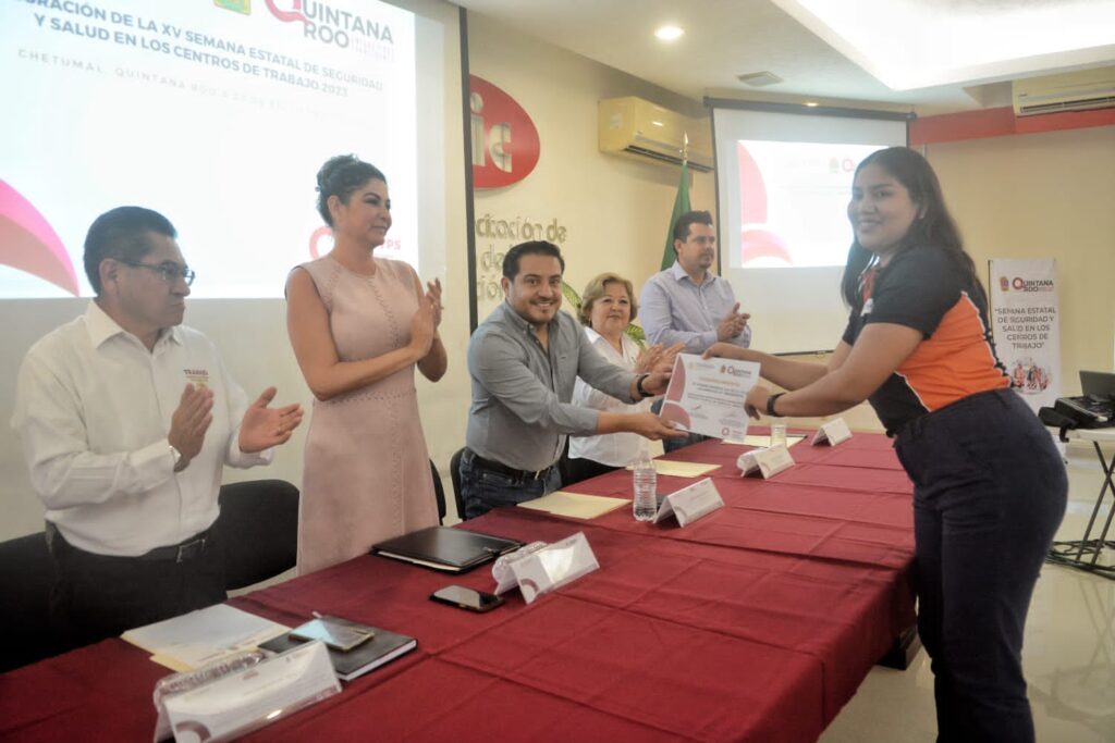 Chetumal.- Con el objetivo de fomentar una cultura de prevención de accidentes laborales, promover el respeto a las medidas de seguridad de acuerdo a lo establecido por la normatividad en la materia, así como dar a conocer los programas de capacitación y desarrollo de asistencia técnica para los trabajadores en activo, se inauguró este lunes 25 de septiembre la “Semana Estatal de Seguridad y Salud en los Centros de Trabajo 2023″.