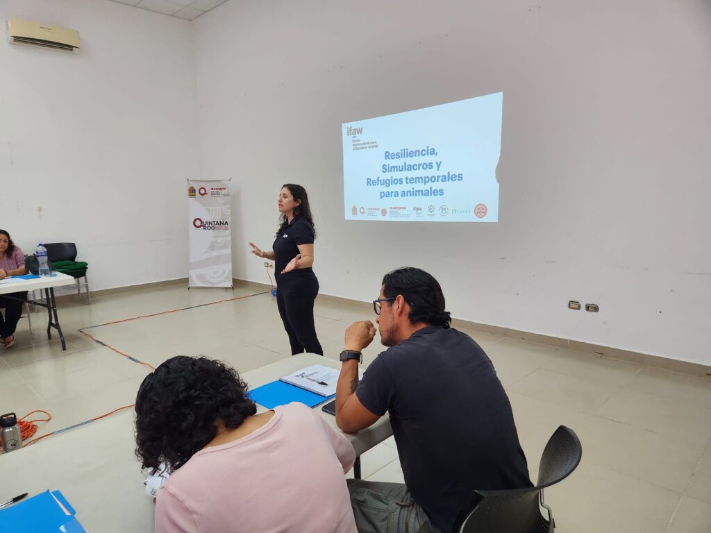El taller “Implementación de Refugios Temporales para Animales” fue impartido por la asesora veterinaria para América Latina y el Caribe y gerente del proyecto, Erika Flores y el Oficial de Programa de Respuesta a Desastres y Reducción de Riesgos de América Latina y el Caribe, Saúl Rodríguez, ambos del Fondo Internacional para el Bienestar Animal (por sus siglas en inglés IFAW).