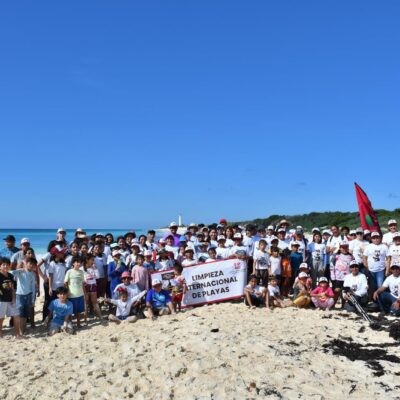 -Participaron 130 personas voluntarias de todas las edades Cozumel.- En el marco del Día Mundial de la Limpieza de Playas,