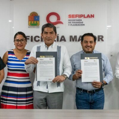 El Oficial Mayor de la #SEFIPLAN, firmó un convenio de colaboración con Manuel Alfredo Pech Palacio, Rector de la @UPQROO