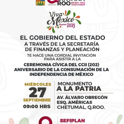 Continúa celebrando las #FiestasPatrias2023, asiste HOY a la Ceremonia Cívica del 202 aniversario de la Consumación de la Independencia de