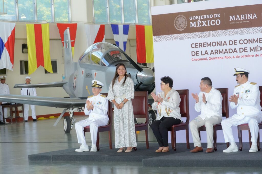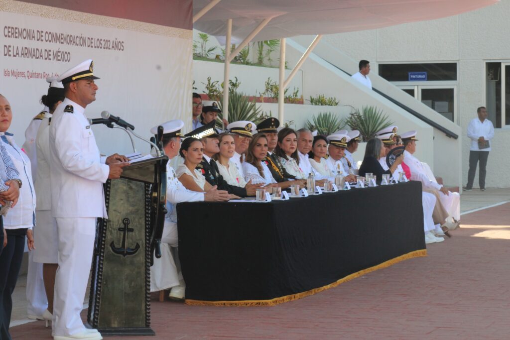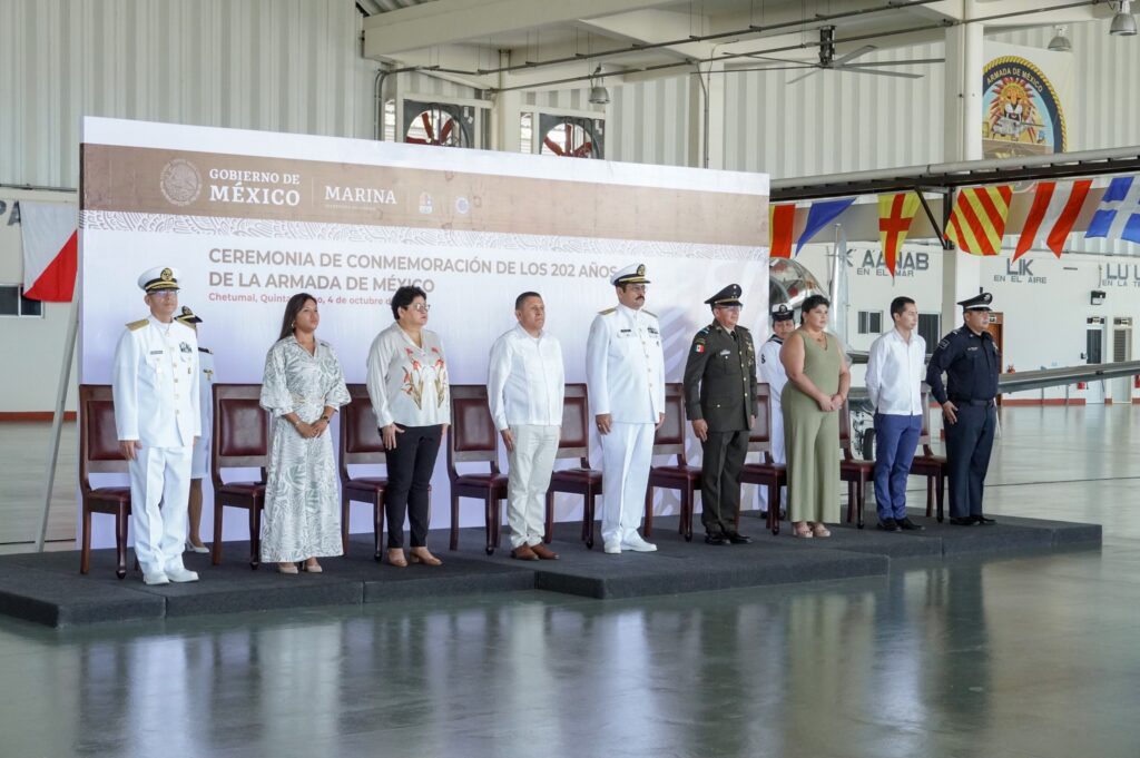 Chetumal, Quintana Roo, 4 de octubre del 2023.- La Consejera Ciudadana, María de Guadalupe Angélica Chan Flores, asistió, en representación del Poder Judicial del Estado de Quintana Roo, a la ceremonia en conmemoración al “202 Aniversario de la Creación de la Armada de México”; realizada en la Comandancia de la Novena Región Naval, con sede en Isla Mujeres; en la cual, fue partícipe la Gobernadora del Estado, Mara Lezama Espinosa; en el cual fue participe la Gobernadora del Estado, Mara Lezama Espinosa; así como las Presidentas Municipales de Benito Juárez, Ana Paty Peralta; de Puerto Morelos, Blanca Merari Puerto Morelos y de Isla Mujeres, Atenea Gómez Ricalde .