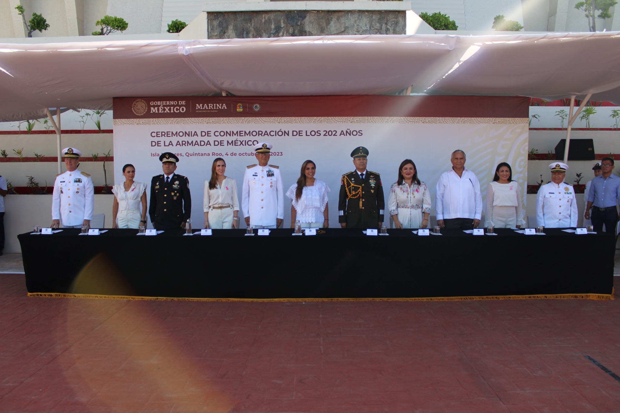 Chetumal, Quintana Roo, 4 de octubre del 2023.- La Consejera Ciudadana, María de Guadalupe Angélica Chan Flores, asistió, en representación del Poder Judicial del Estado de Quintana Roo, a la ceremonia en conmemoración al “202 Aniversario de la Creación de la Armada de México”; realizada en la Comandancia de la Novena Región Naval, con sede en Isla Mujeres; en la cual, fue partícipe la Gobernadora del Estado, Mara Lezama Espinosa; en el cual fue participe la Gobernadora del Estado, Mara Lezama Espinosa; así como las Presidentas Municipales de Benito Juárez, Ana Paty Peralta; de Puerto Morelos, Blanca Merari Puerto Morelos y de Isla Mujeres, Atenea Gómez Ricalde .