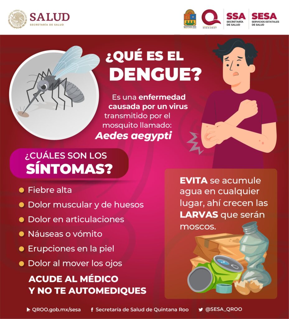 ¡Cuídate del dengue! Te dejamos unas recomendaciones para prevenir esta enfermedad, si presentas alguno de estos síntomas, acude a tu centro de salud más cercano