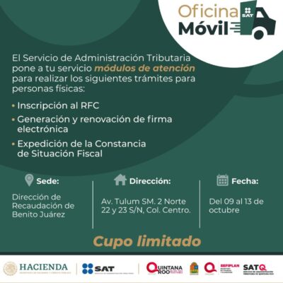 Eres persona física?, el @satqroo en coordinación con el SAT Federal, traen para ti la #OficinaMóvilSAT para que realices tus trámites pendientes