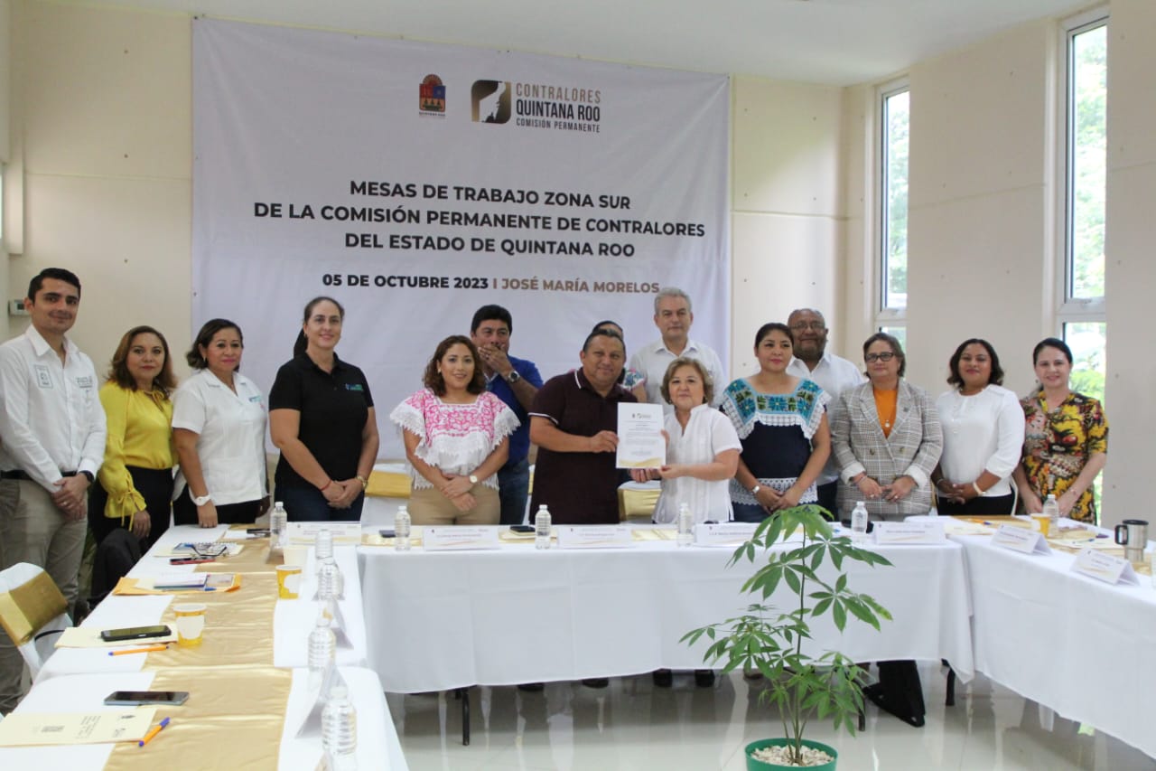 José María Morelos.- Con el objetivo de compartir experiencias para mejorar el control interno y fortalecer la transparencia, la Secretaría de la Contraloría encabezó la mesa de trabajo de la zona sur de la Comisión Permanente de Contralores del Estado de Quintana Roo, que se realizó en el municipio de José María Morelos.