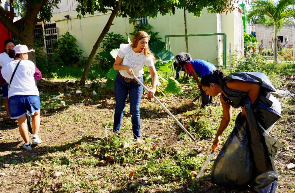“Estamos aquí cumpliendo a los vecinos de la Privada El Mango, en el fraccionamiento Villas Otoch; vine hace algunos días y ellos se acercaron a platicarme que este pequeño parque estaba abandonado, con mucha basura y mucha hierba, por lo que no tenían un lugar para que sus hijos jueguen, y me solicitaron ayuda para limpiarlo”, explicó la senadora Marybel Villegas.