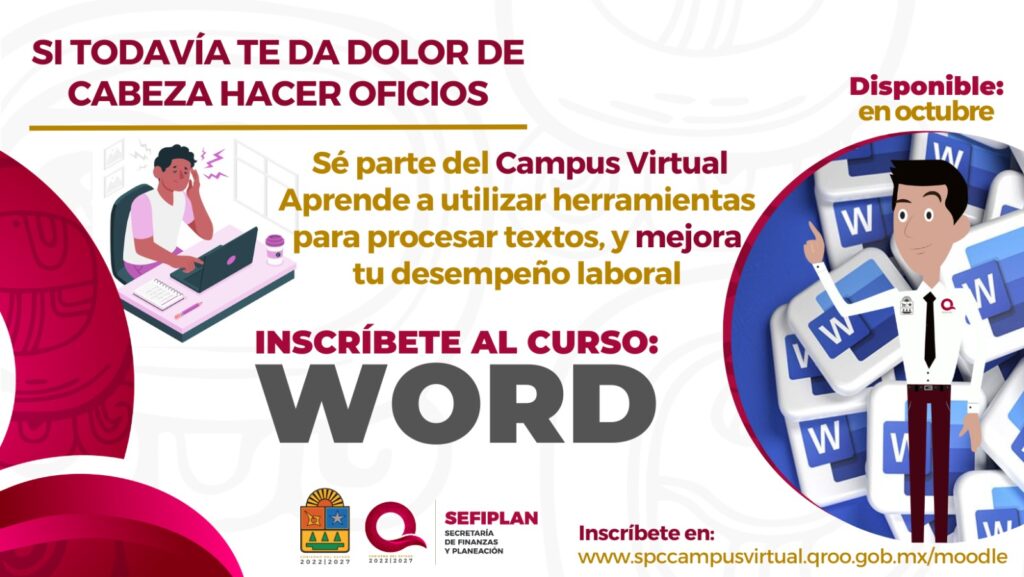 Inscríbete al curso de WORD en: 👇 http://spccampusvirtual.qroo.gob.mx/moodle/login/index.php