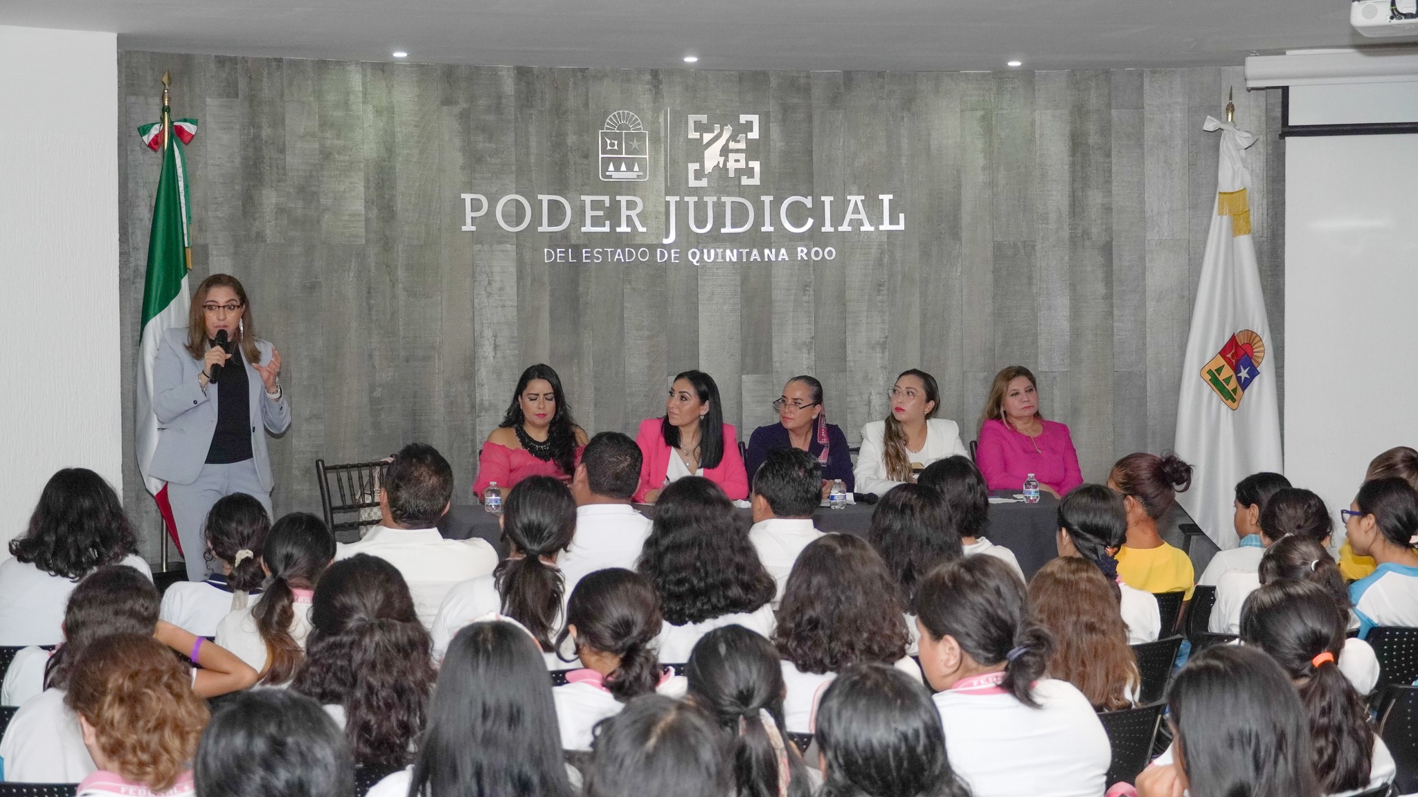 En este Primer Diálogo con niñas y adolescentes, se contó con la participación de la Jueza de Primera Instancia en Materia Civil, Familiar y Mercantil, Adriana Ivette Rivero Mendoza; de la Presidenta de la Asociación de Mujeres Empresarias A.C. Capitulo Cancún (Amexme), Miriam Escalante Rejón; así como de la Presidenta del Comité Distrital de Rotary Internacional, Itzael Pedroza Ibarra; la Abogada en Materia Familiar, especialista en casos de Violencia de Género, Yesenia Carreño Díaz y la Conductora del programa “Cuéntamelo Todo”, Dulce Vargas.