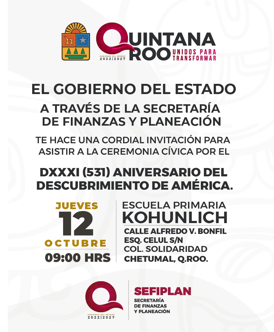 Te invitamos a participar en la Ceremonia Cívica para conmemorar el 531 Aniversario del Descubrimiento de América. ¡Te esperamos!👇