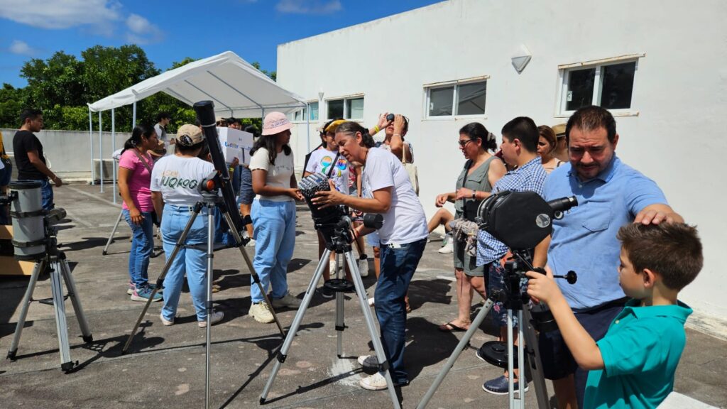 El Planetario de Cozumel se aseguró de que todos los asistentes tuvieran la oportunidad de disfrutar del Eclipse Solar Anular de manera segura. Para ello, se dispusieron 21 telescopios, binoculares y lentes con filtros especiales, que permitieron a los asistentes admirar el fenómeno con detalle y sin riesgos para su salud visual.