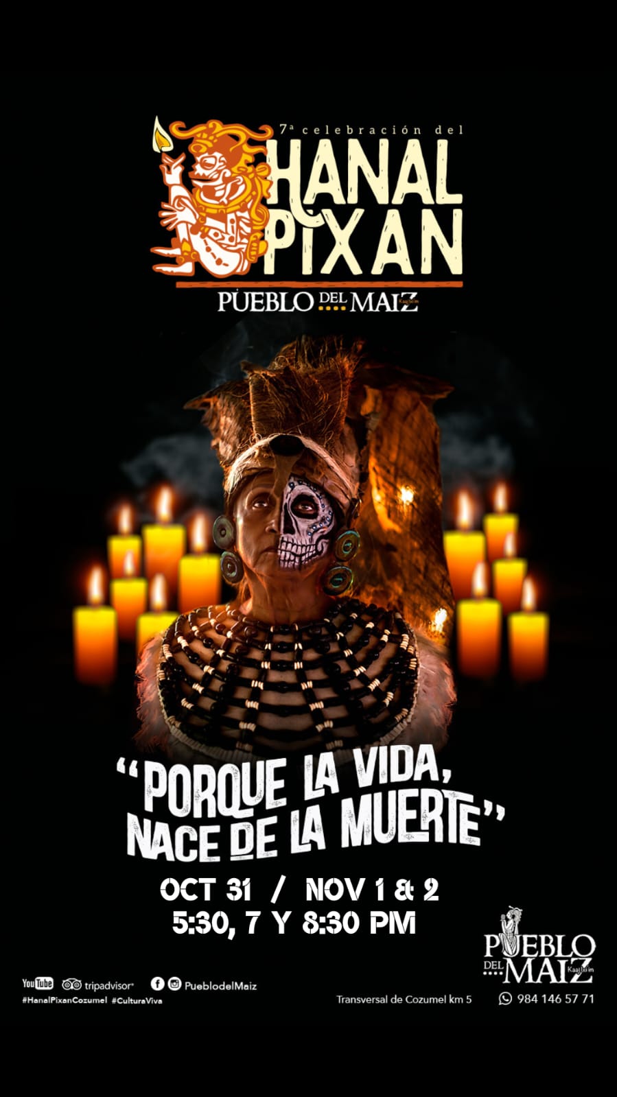 Es momento de despertar, es el llamado a las ánimas, las puertas de Xibalbá están próximas a abrirse y las ofrendas esperarán en el camino de las velas, el aroma de la flor de Xpujuk y el copal serán sus guías, pues es nuestra tradición, ya es tiempo de Hanal Pixán en Pueblo del Maíz. Las leyendas de Xibalbá cobran vida una vez más gracias a la participación de la comunidad de nuestra Isla Cozumel.