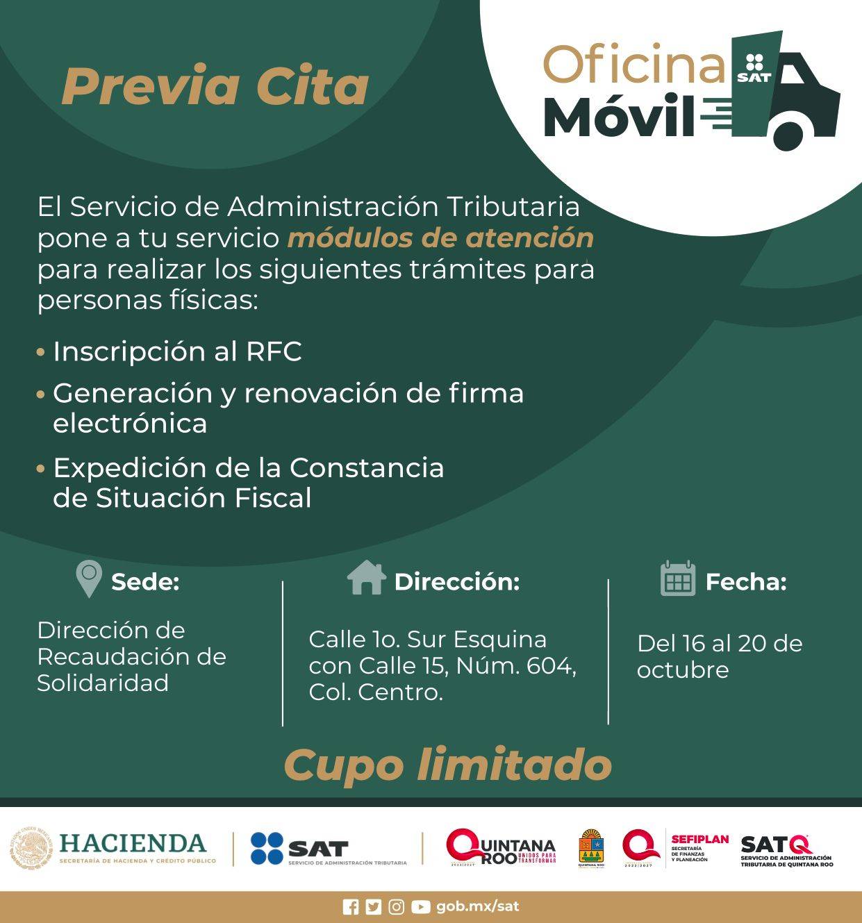 El SATQ en coordinación con el SAT Federal te lleva a tí su #OficinaMóvilSAT
