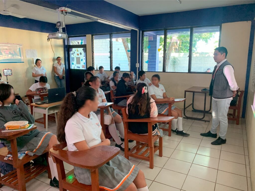 Martínez Ortega dijo que “se continua con la estrategia de paz que implementa la gobernadora Mara Lezama, como parte del Nuevo Acuerdo por el Bienestar y Desarrollo de Quintana Roo, brindando capacitaciones a la niñez, adolescentes y jóvenes en temas como Prevención del Acoso Escolar (Bullying) y Ciberbullying.