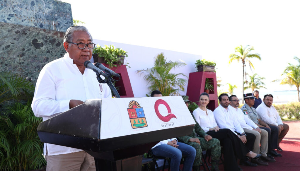 Con la representación de la gobernadora Mara Lezama Espinosa, presidió la ceremonia conmemorativa el Subsecretario de Vinculación Institucional de la Secretaría de Obras Públicas (SEOP), Fabián Orlando Flota Becerra, acompañado de autoridades civiles y militares de los tres órdenes de Gobierno.