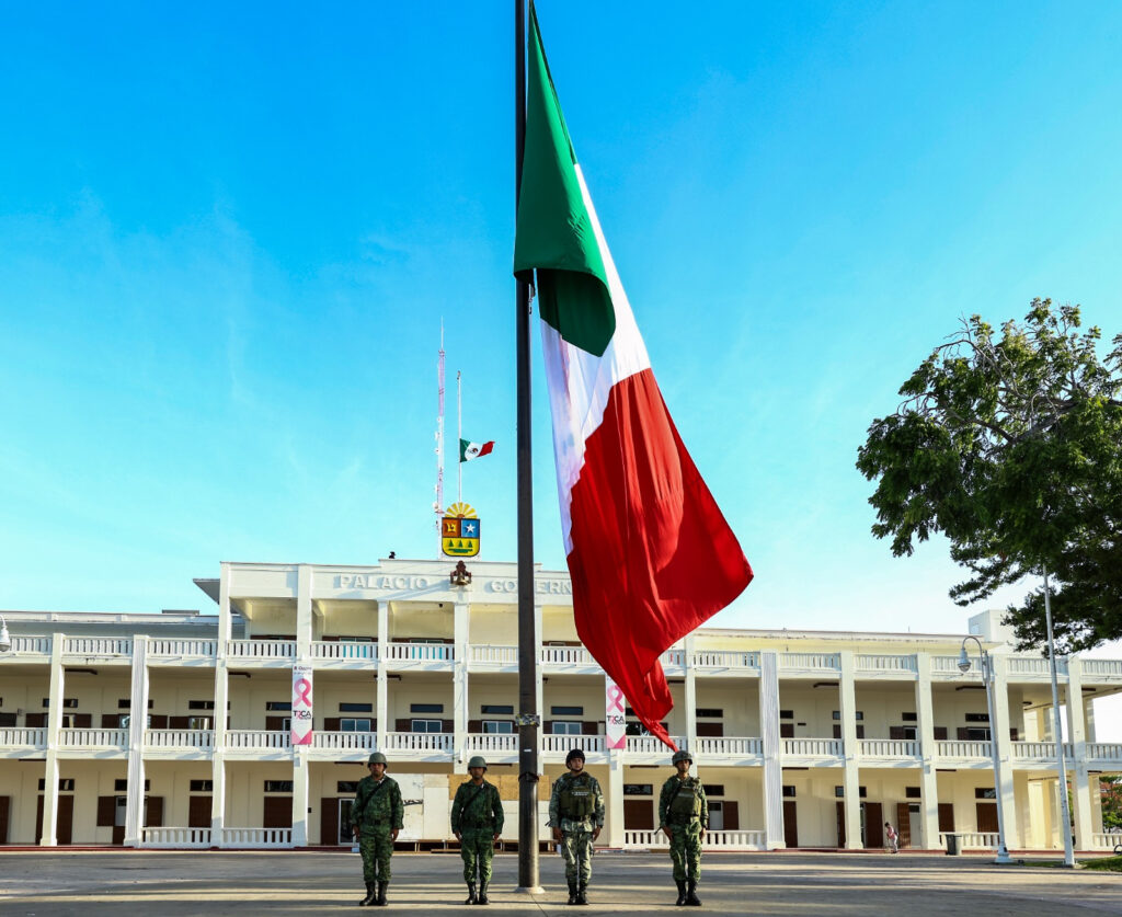 Antes de efectuar la ceremonia cívica, elementos de la 34 Zona Militar llevaron a cabo el izamiento de la Bandera Nacional Mexicana a media asta en la plaza situada frente al Palacio de Gobierno, dando cumplimiento al protocolo por ser día marcado en el calendario cívico oficial.