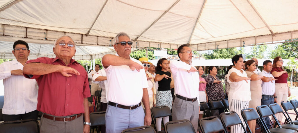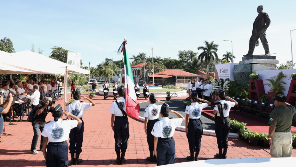 Durante el solemne acto, la Banda de Música y el Coro del Instituto de la Cultura y las Artes, entonaron la melodía “El Pájaro Amarillo”, así como los himnos a Quintana Roo y Nacional Mexicano. Se rindieron los honores a la Bandera de México. La banda de guerra y escolta de la bandera, estuvieron integrados por alumnos de la escuela “Eva Sámano”.
